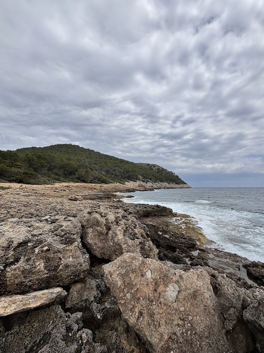 Efter maten följde vi vår plan på AllTrails och vandrade rutten Cala Agulla – es Telègraf – Cala Mesquida – Puig de l’Àguila, där vi njöt av doften från pinjeträd och utsikten över det turkosa havet. Jag är sju månader gravid, men vandringen var överkomlig även för mig. Det är absolut värt det!